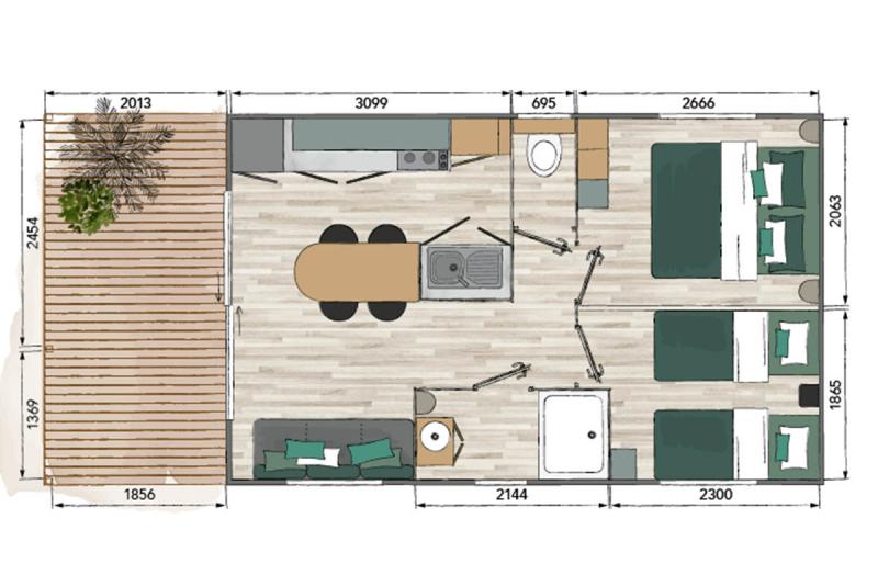 Pour 1 à 4 personnes, avec 1 chambre en mezzanine et canapé-lit convertible au RDC, terrasse et parking privatif devant votre hébergement.